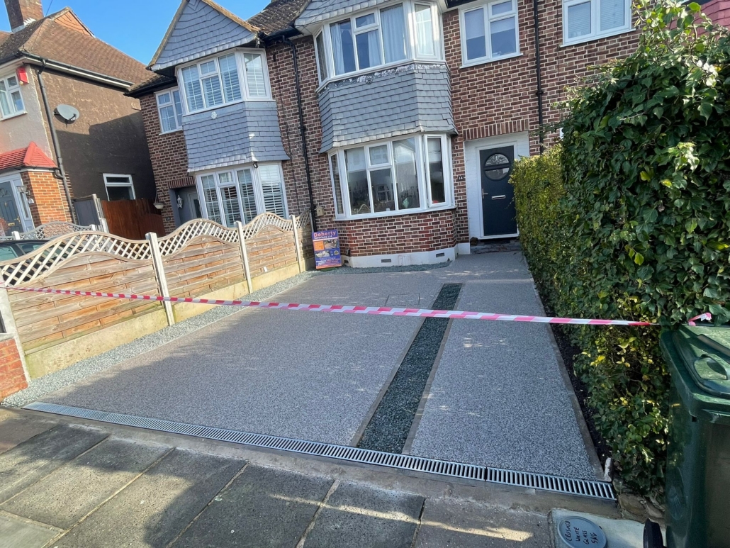 Resin bound surfacing is a popular choice thanks to its seamless look, long lifespan, and low maintenance. Its permeable structure allows rainwater to drain efficiently, helping to prevent standing water while reducing the risk of weed growth and cracking over time.